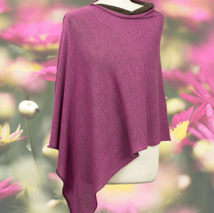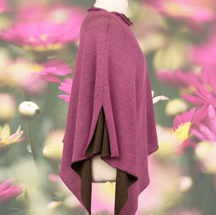 Experience the beauty of nature with the Colours of Nature Merino Reversible Poncho - Summer Garden. Inspired by vibrant colours of a summer garden this luxurious poncho features silky-soft merino in a hot pink and a contrasting dark green.