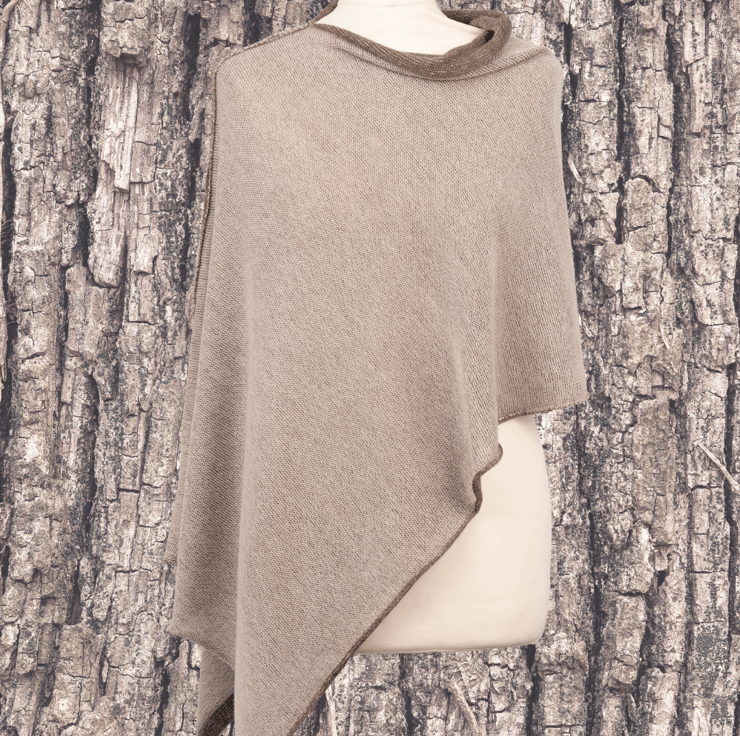 Experience the beauty of nature with the Colours of Nature Merino Reversible Poncho - Bark. Inspired by the interesting shades of tree bark, this luxurious poncho features silky-soft merino in natural and a contrasting mushroom colour.