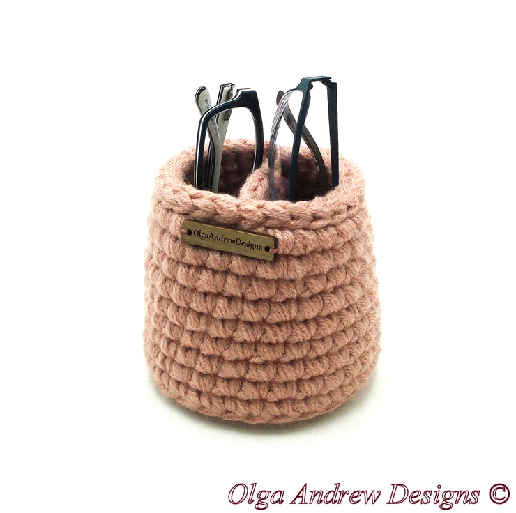 This hand crocheted round small-medium divided eyeglass holder stand could be very useful to keep your glasses safe and handy. The sides of the multiple eyeglasses holder are very sturdy, strong and dense. This eyeglass storage is very practical, and you can use this soft glasses holder also as a nightstand or desk organizer. This double eyeglasses stand would also be a great gift for mum, dad, friends and colleagues.