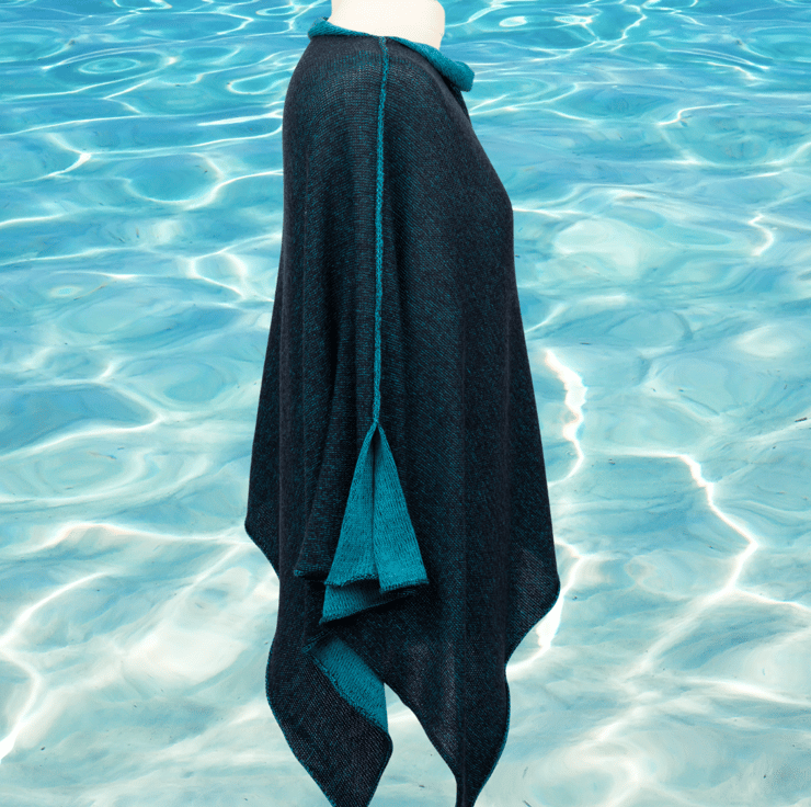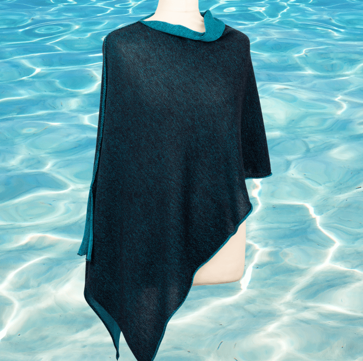 Experience the beauty of nature with the Colours of Nature Merino Reversible Poncho - Sea. Inspired by the beautiful shades of the sea, this luxurious poncho features silky-soft merino in turquoise and a contrasting navy.