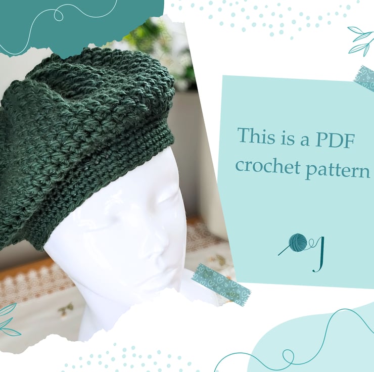 This listing is not for a finished Crochet Beret but for a PDF Crochet Pattern for you to make your own crochet hat.
