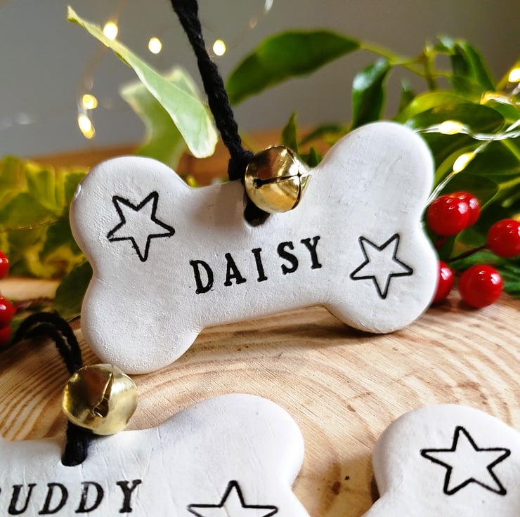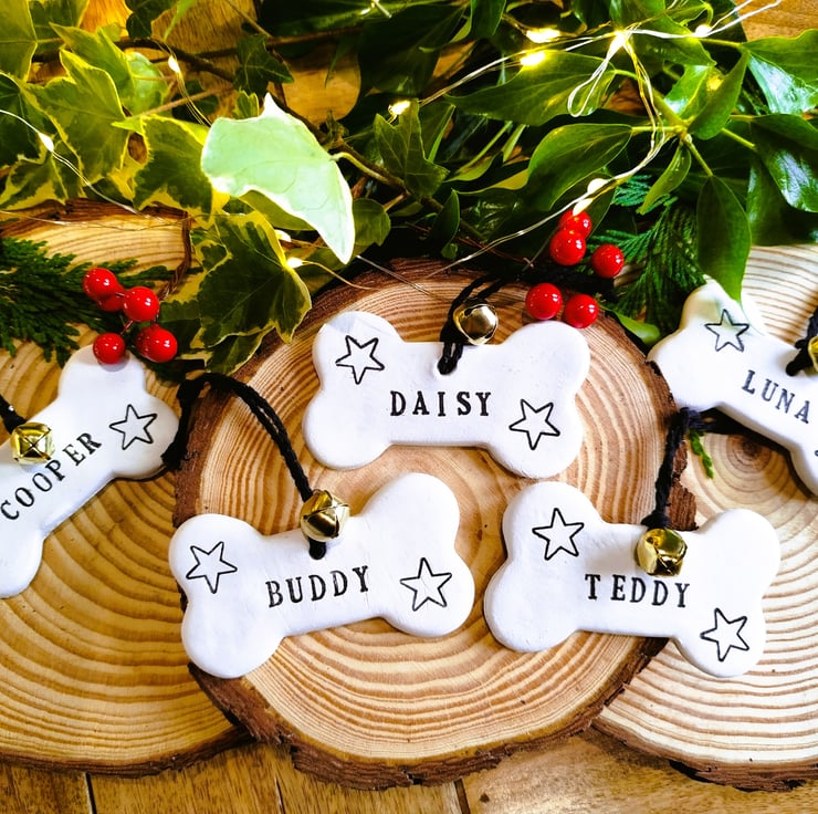 Make this holiday season extra special for your family pet with my personalised dog Christmas bauble ornament. Handcrafted with love in my home studio this unique tree ornament adds a touch of festive charm to your home, celebrating the joy your furry family member brings.