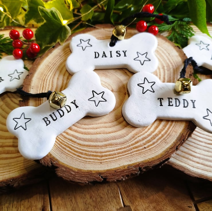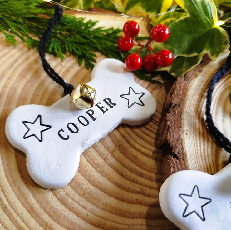 Custom dog bone Christmas tree decoration, dog lovers Christmas ornament gift, custom name bauble