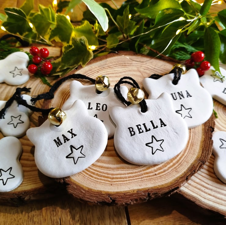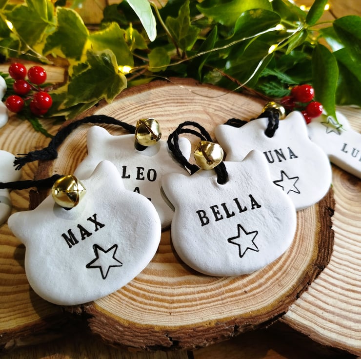 Make this holiday season extra special for your feline friend with my enchanting Personalised cat Christmas decoration. Handcrafted with love in my UK studio this unique tree ornament adds a touch of festive charm to your home, celebrating the joy your furry family member brings.