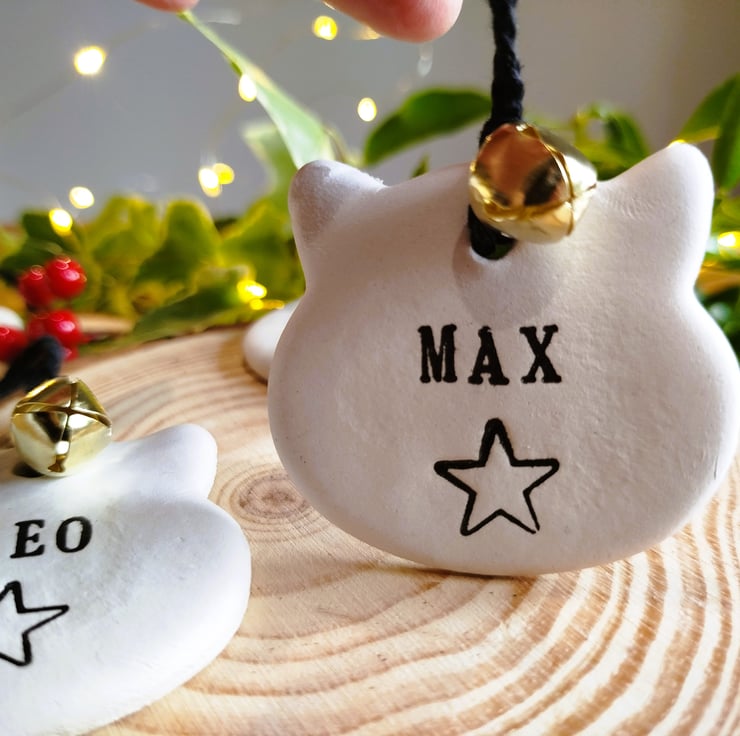 Your cat's name is imprinted in elegant gold lettering, this decoration becomes a truly special keepsake.