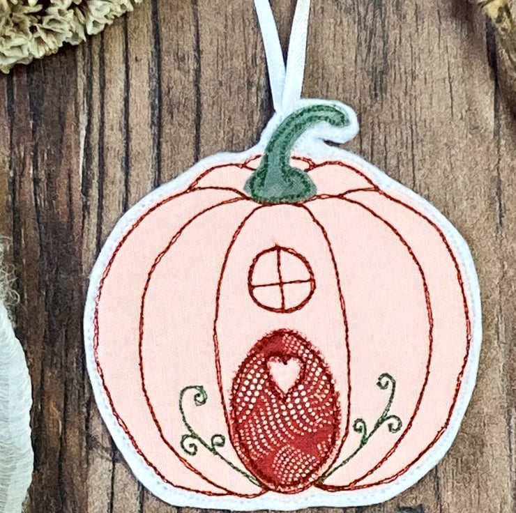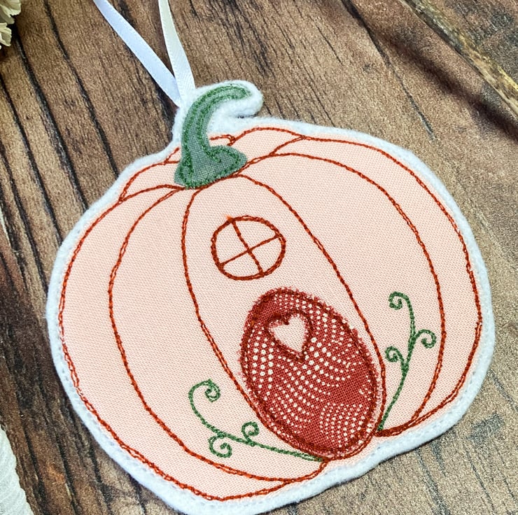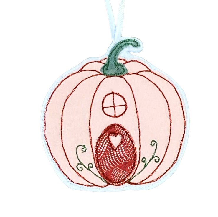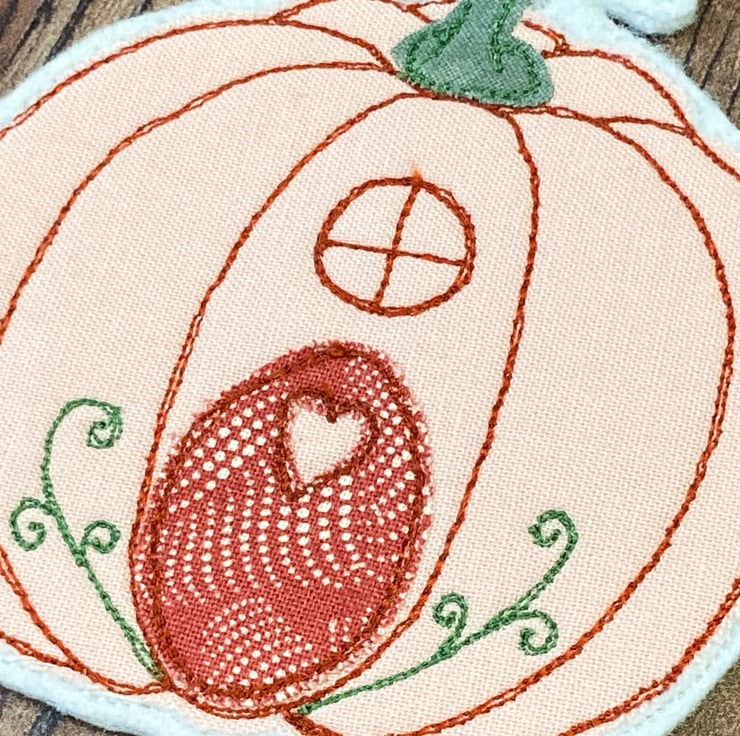 Every Pumpkin Cottage is handcrafted with love, thread and off cuts of fabric, sitting on a wool/mix felt background, with embroidered details and some hand painted fabric.