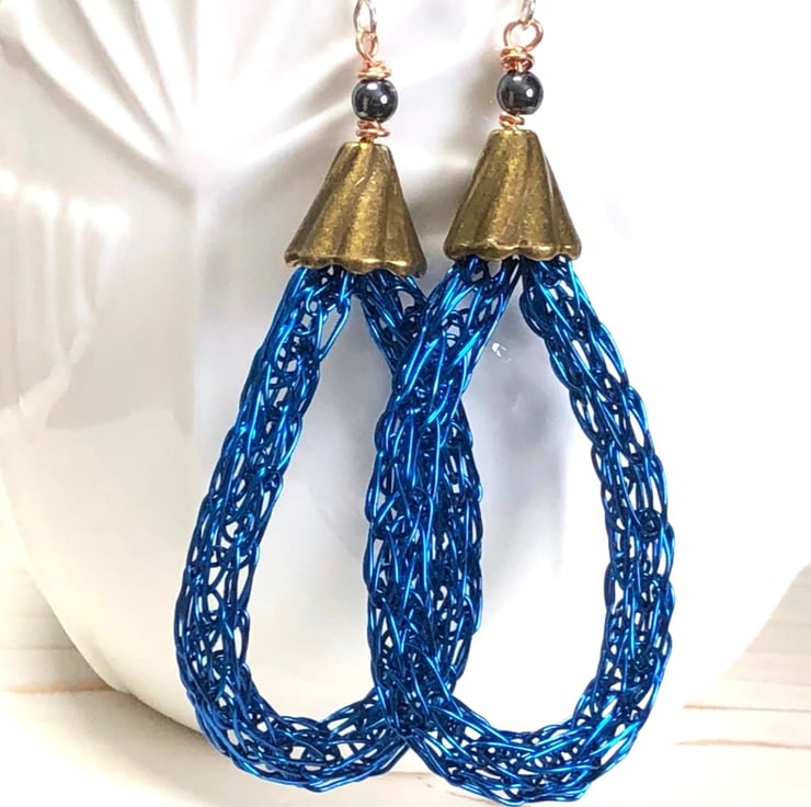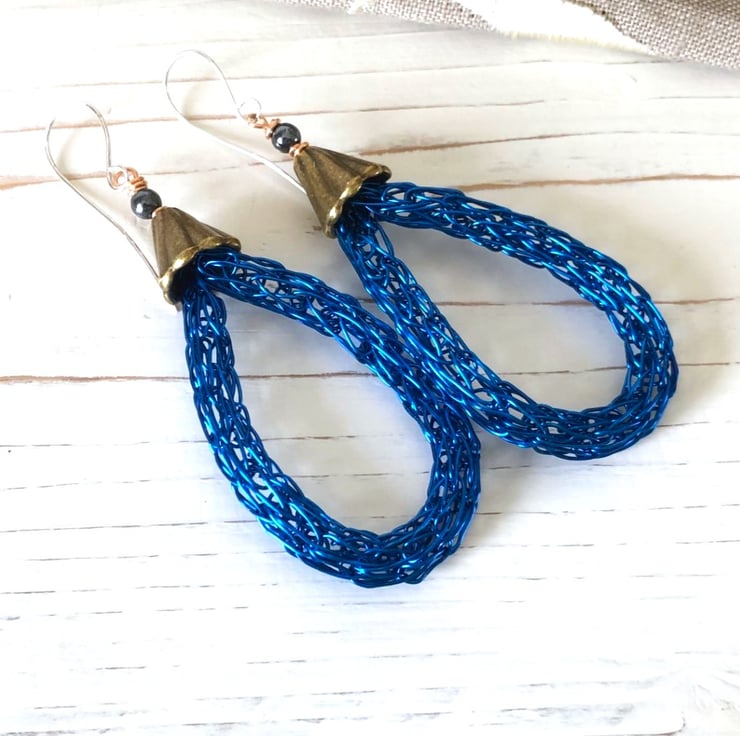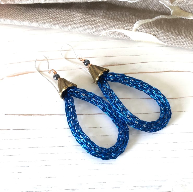 Ready for Christmas? These Woven Wire Drop Earrings in Deep Blue with Silver Ear Wires could be the perfect gift for wife, girlfriend, mum, friend, granny or anyone else you'd like to give a present to.