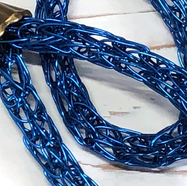 I've woven these from silver plated copper wire that has been coated in various colours, deep blue in this case. I've made the ear wires are in sterling silver and have given them quite a long tail as that's how I like to wear them.