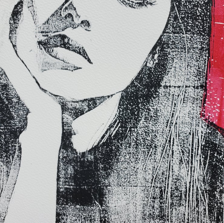 This is a geli plate photo transfer of my own project, with reverse painting and final touch of fineliner. Please be aware that the colors you see on your monitor may differ slightly from the actual colors of the print. Print is unframed