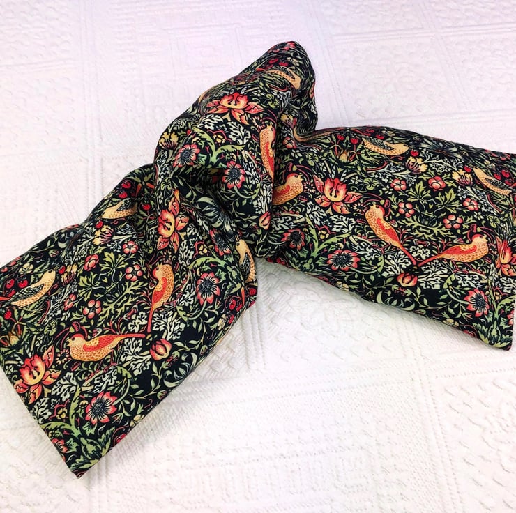 Using Strawberry Thief cotton fabric and filled with natural wheat and Yorkshire Lavender (optional).