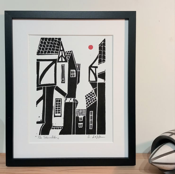 The Shambles York is an Original Lino Cut Print (NOT a digitally reproduced print).