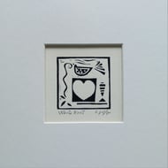 Each Lino cut will make a lovely gift, as it is nicely presented on a stiff board and in a bio degradable cellophane sleeve! The back of the board will have a write up about the artist!