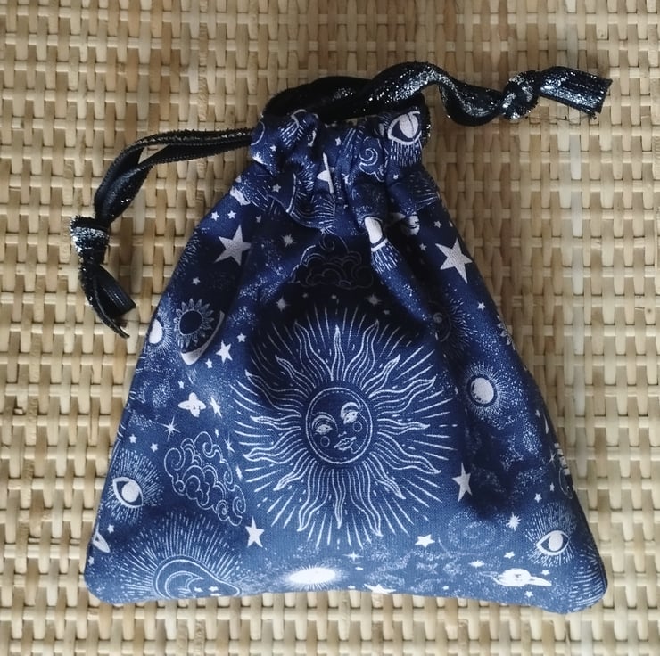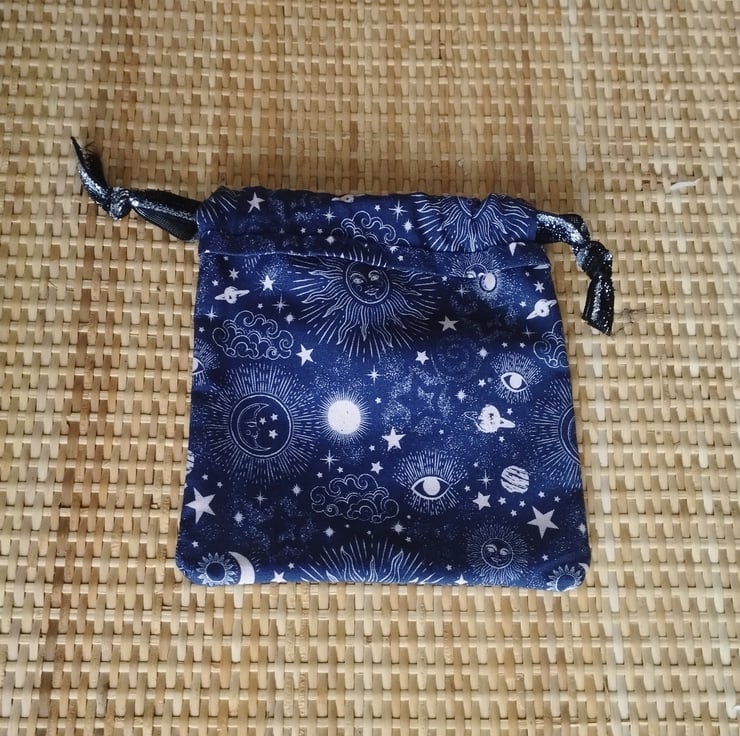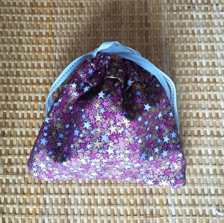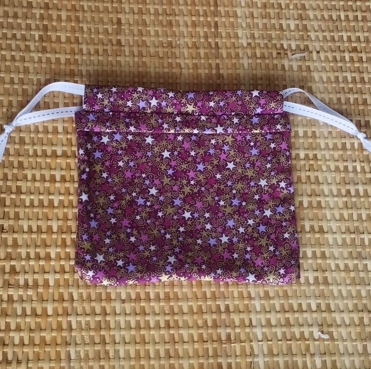 Bags measure approximately 14cm and are available in 4 different fabrics (draw strings may vary).