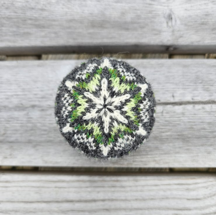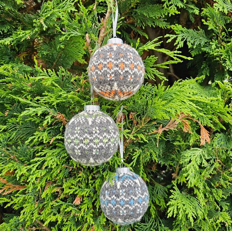 This Fair Isle bauble is my own design and is hand knit in 100% Shetland wool. Perfect to purchase as a treat for yourself, or as a gift for a loved one. To be hung on a Christmas tree or as part of other decorations around the house. Fair Isle can be used and displayed year round and not only at Christmas.