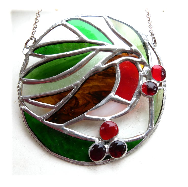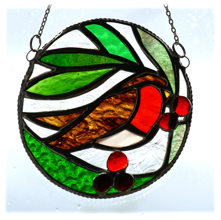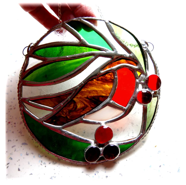 This is a stained glass suncatcher handmade using the Tiffany copper foil technique.