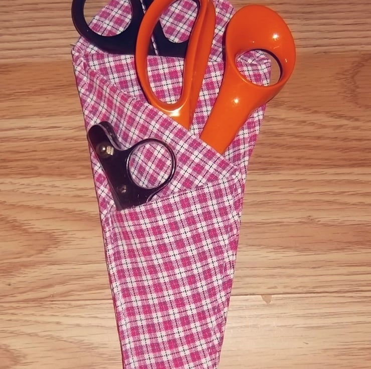 Fits 3 varied size pairs of scissors. But could be used to keep Make up brushes tidy. Or, in your crafting area for your tools.