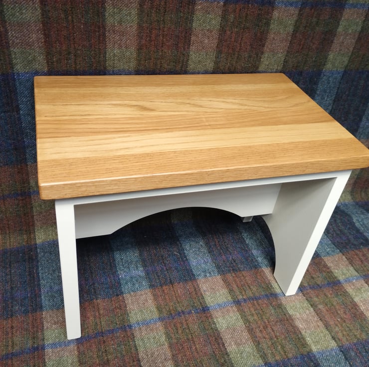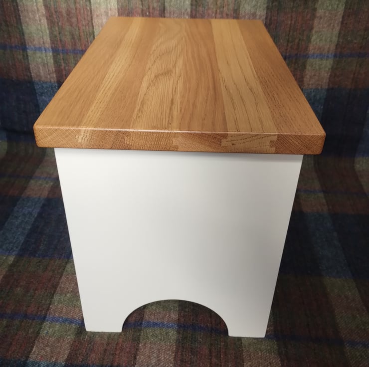 Solid oak laminated top finished with a clear satin hardwax oil.