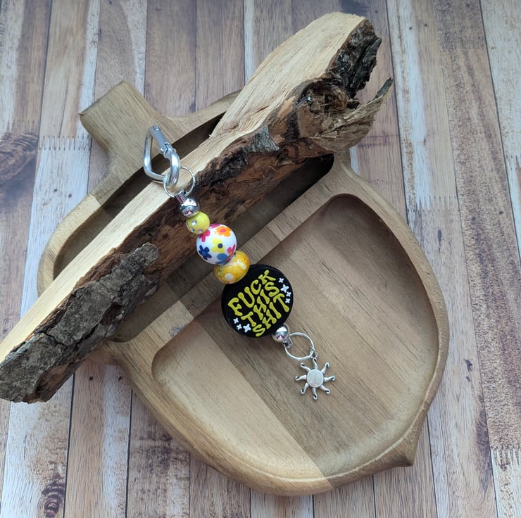 Measuring approximately 4 inches from the bottom of the strong sturdy carabiner clasp. This is suitable for adding to bags, backpacks or even zippers...