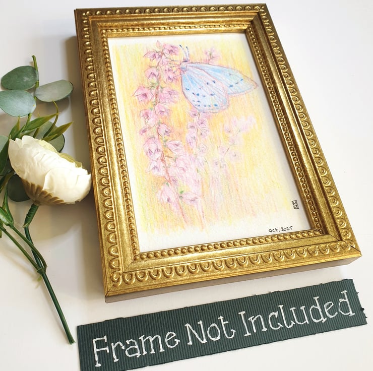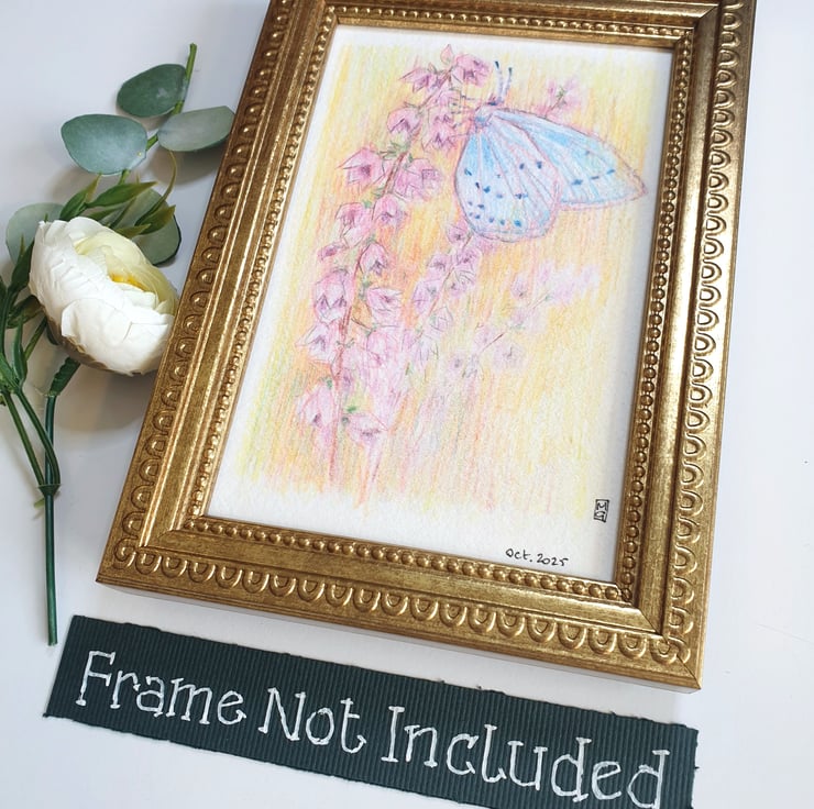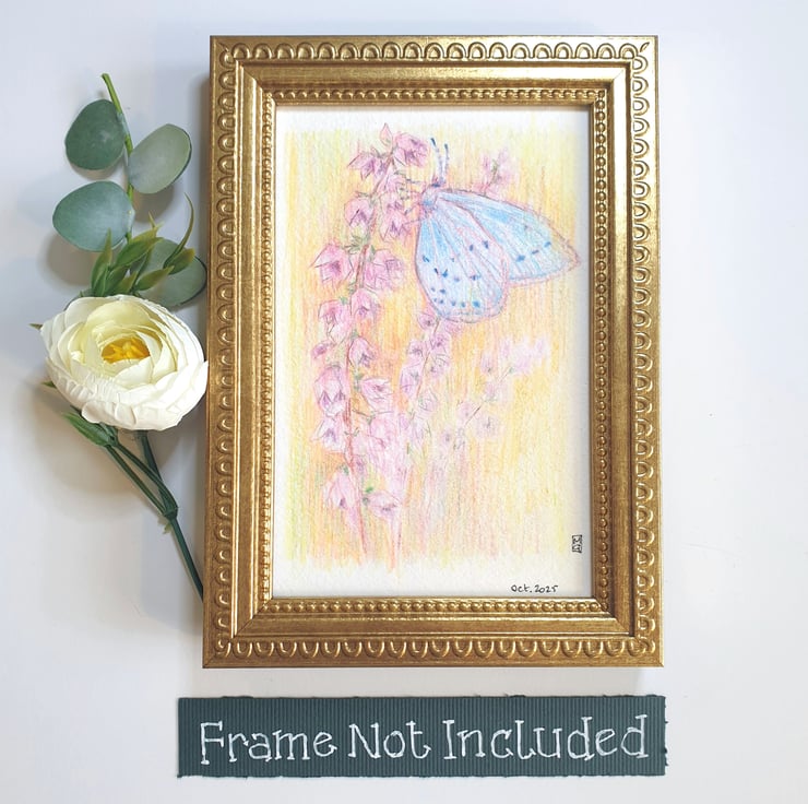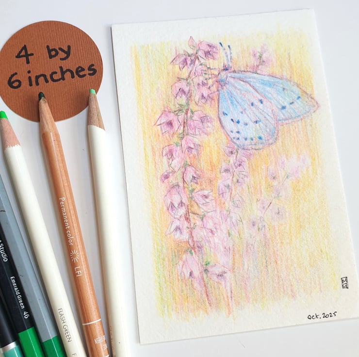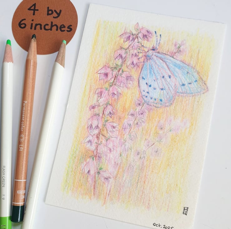 Holly Blue Butterfly on a pink flower, small original art, letterbox gift
