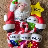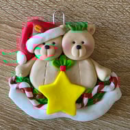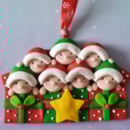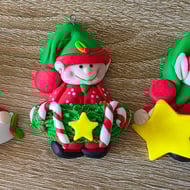 A cute little handmade christmas tree ornament in the shape of an initial and colour of your choice with a little colour co-ordinated elf attached