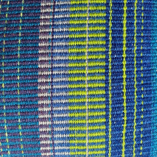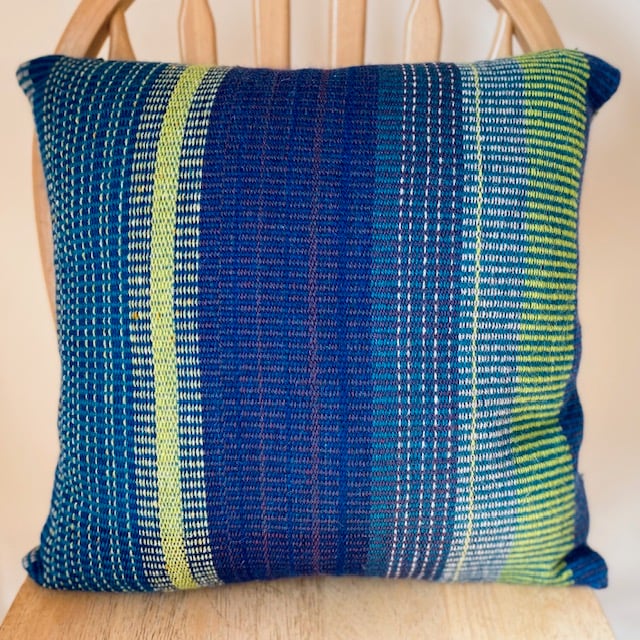 Brilliant Blues and Greens, hand woven cushion cover made using British wool
