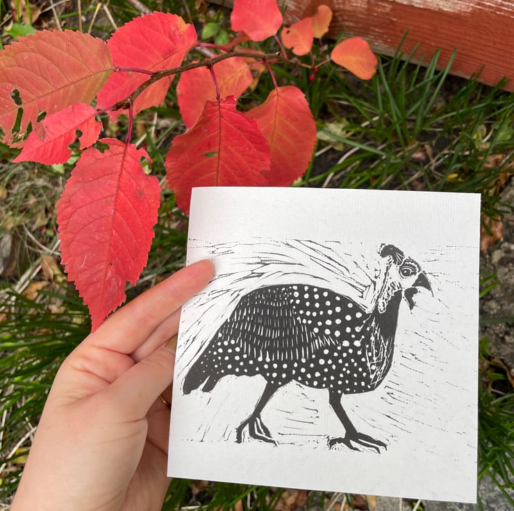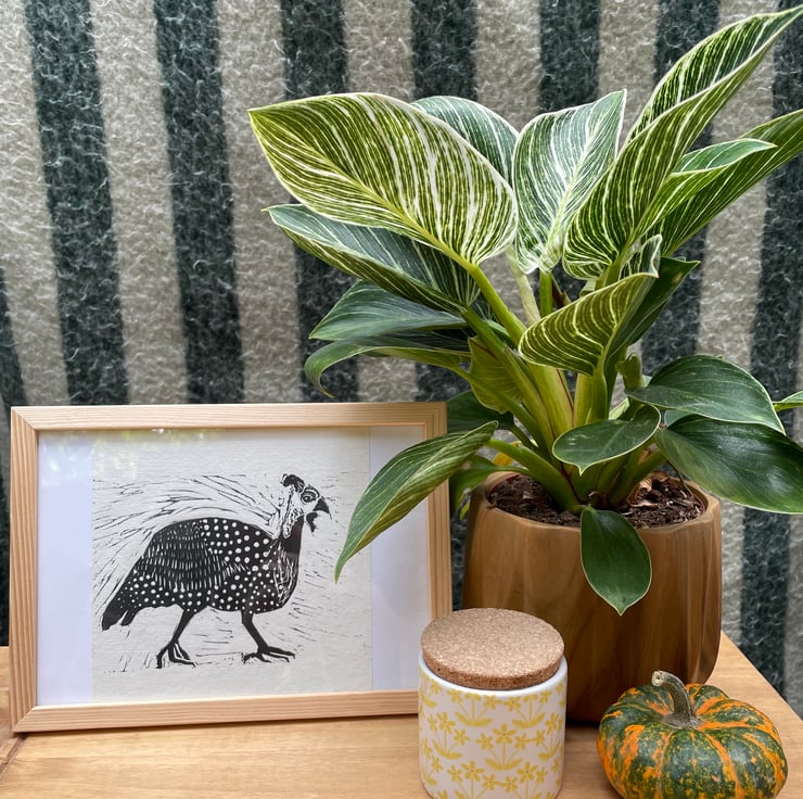 Guineafowl Linocut Print on Khadi Paper Wall Art