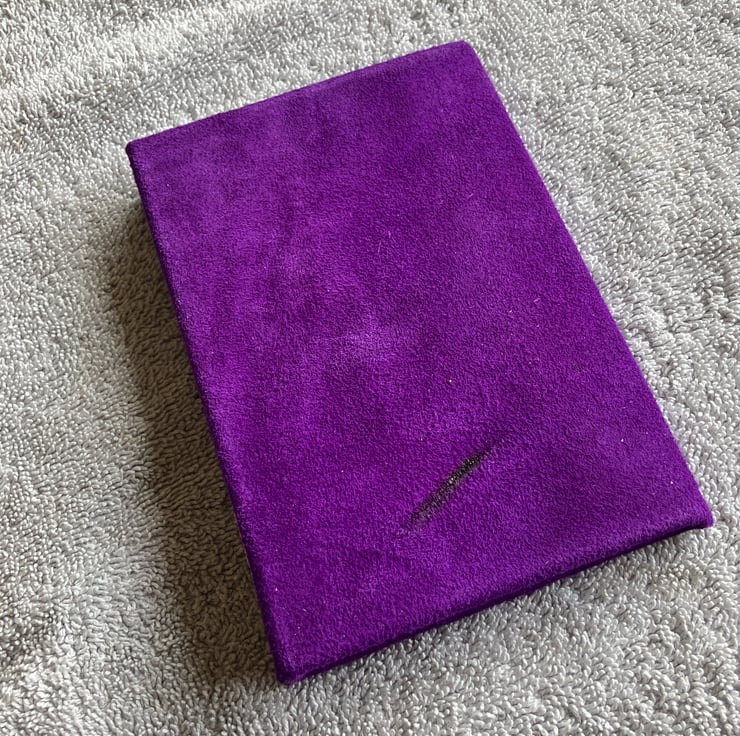 A6: Softcover - Bright Purple coloured suede leather bound A6 sized notebook - 40 lined sheets