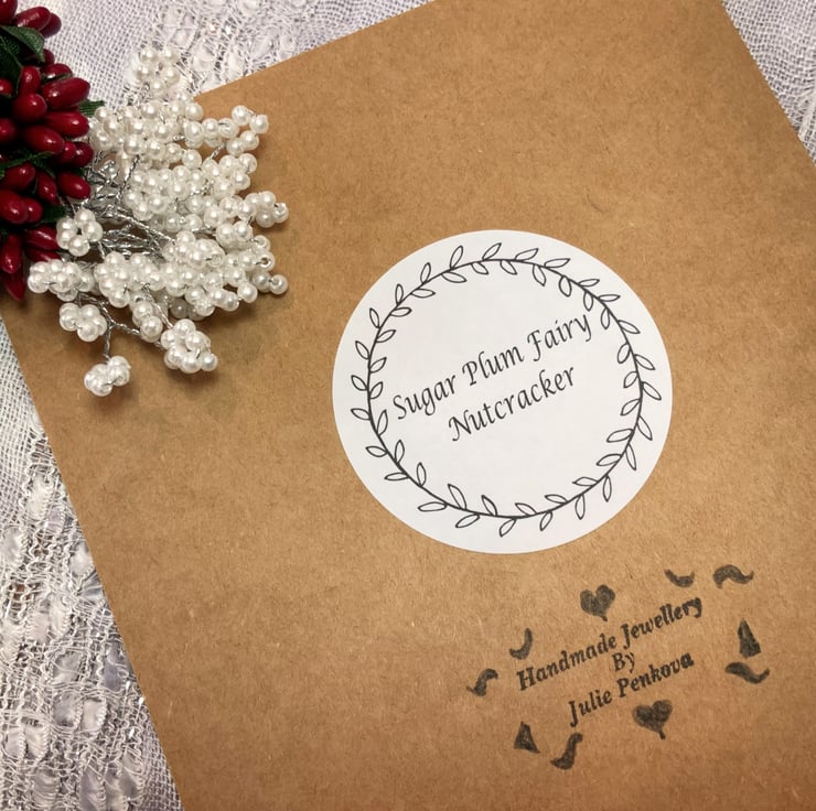 The back of the card has the logo 'Sugar Plum Fairy - Nutcracker' and my handmade stamp