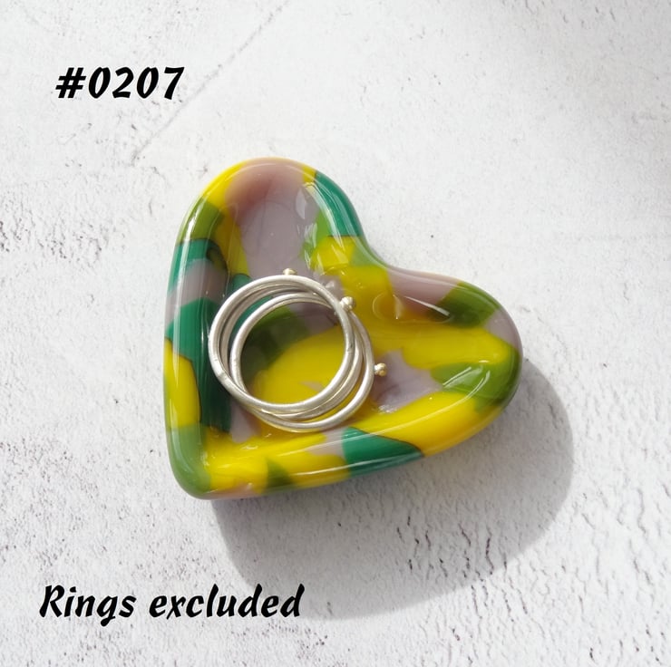 This bright and cheerful small fused glass heart shaped ring dish is handcrafted by myself in Wiltshire from COE90 Bullseye glass, creating a unique, eye-catching piece. Please note the rings are not included.