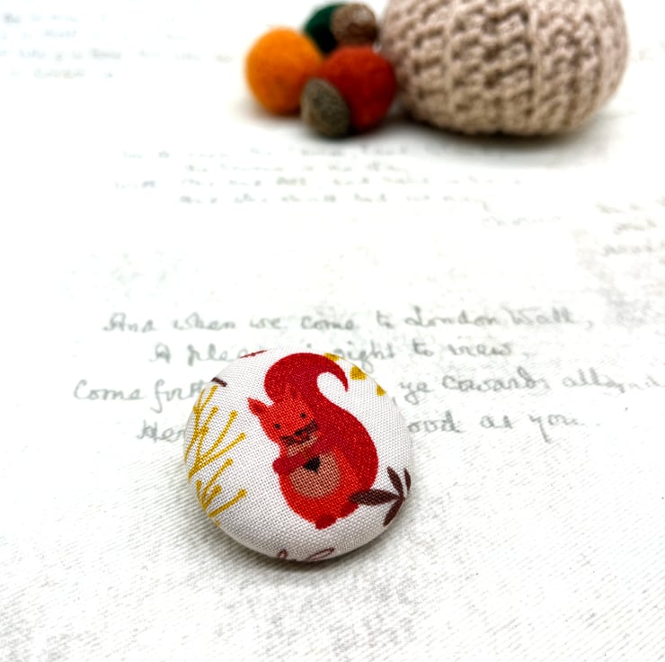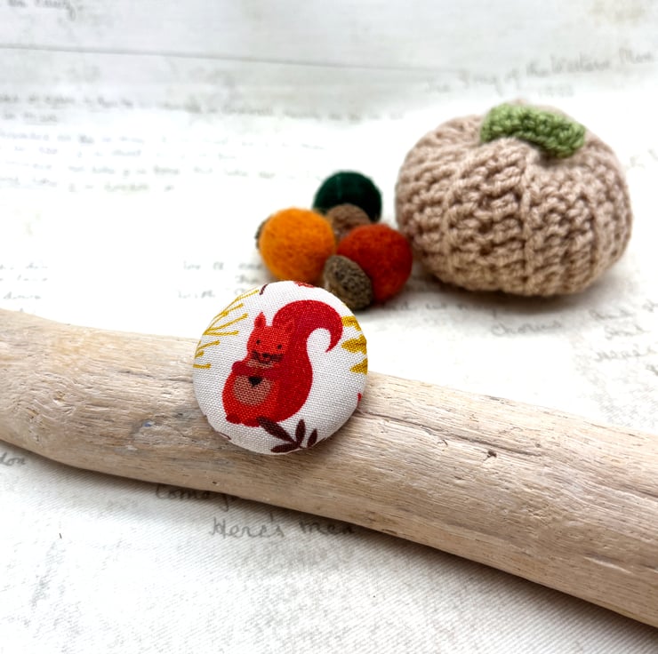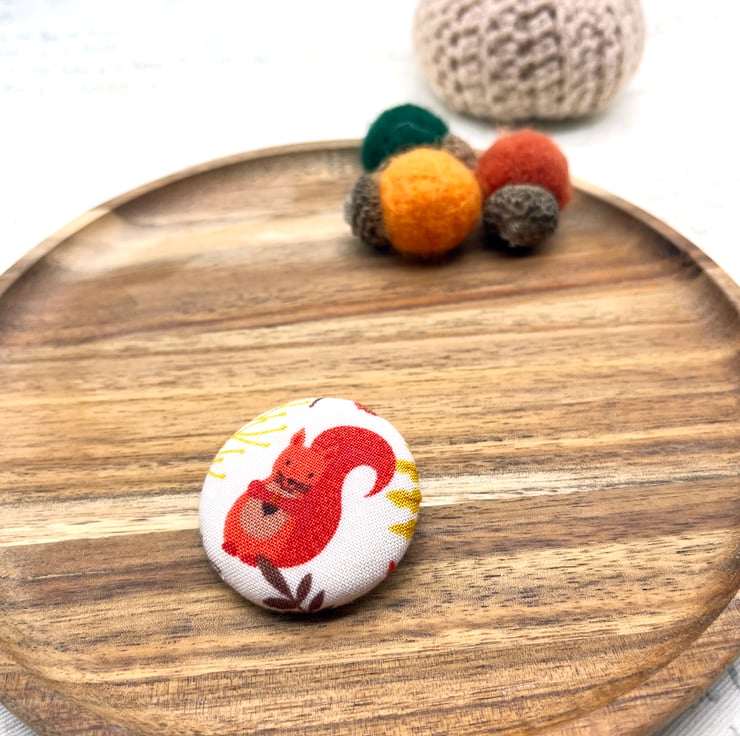 Cute red squirrel and acorns large fabric button brooch - Nature lover