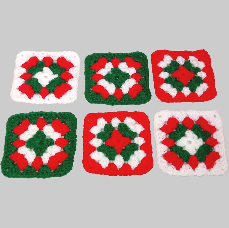 This is a lovely set of six, Christmas coasters in red, green and white.