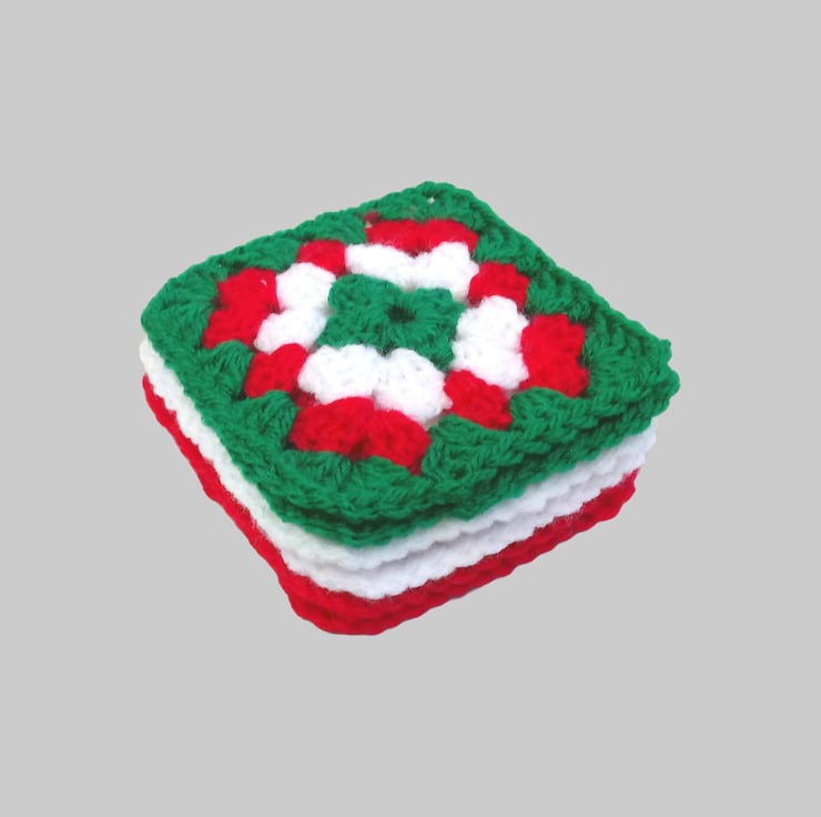 Christmas coasters in red, green and white, square pattern, set of six, handmade