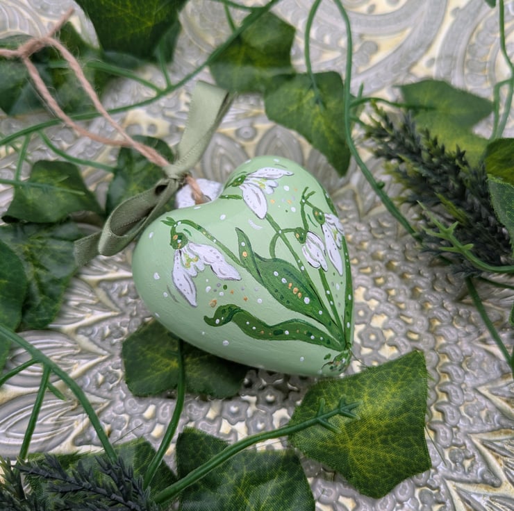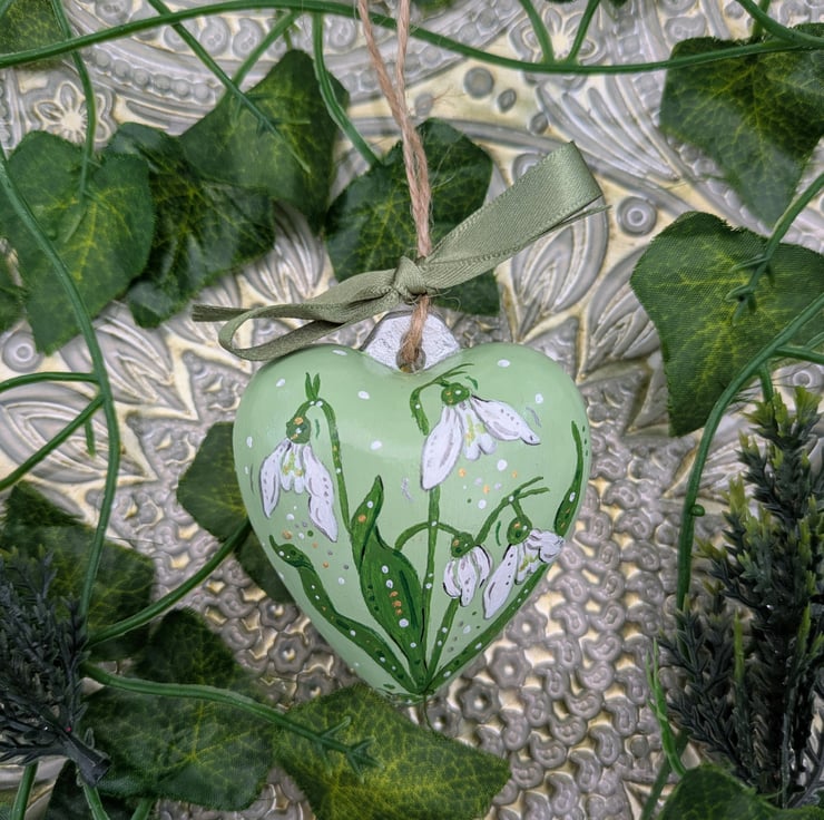 A beautiful hand-painted Snowdrop ceramic heart ornament. This special ornament would make a lovely gift for Christmas or a special birthday for any Snowdrop or flower lover.