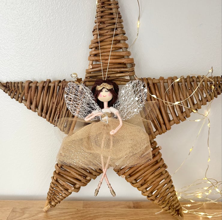 Christmas Gold Star fairy. Handmade and unique, hanging decoration.