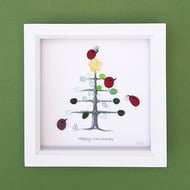 The picture is a digital print. The artwork is embellished with sea glass, polished crystals and COE90 glass dots.