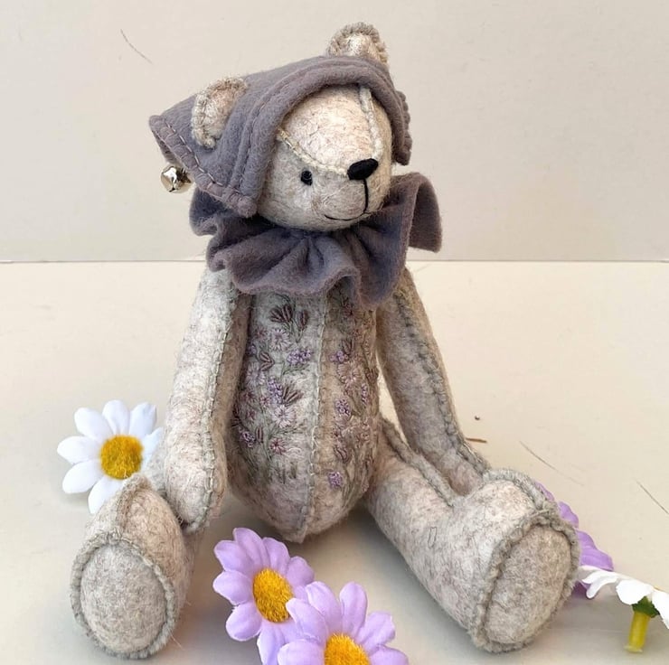 Meet Pearl, a small but sweet 6.75" artist bear, hand sewn with triple seams for strength, she was handmade from premium 2mm 100% wool felt in natural beige and is part of my Signature range of hand sewn bears with the seams to the right side of their bodies which forms part of their decoration.