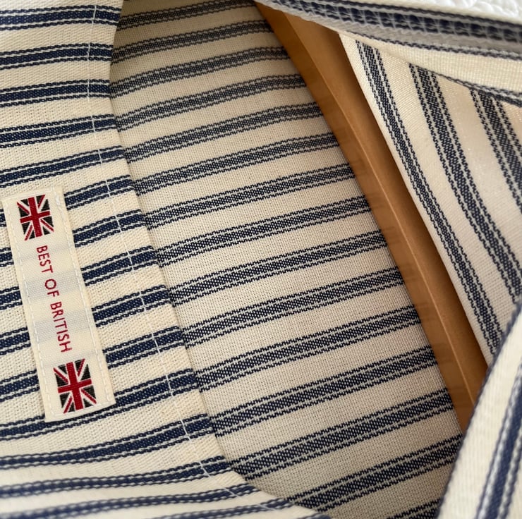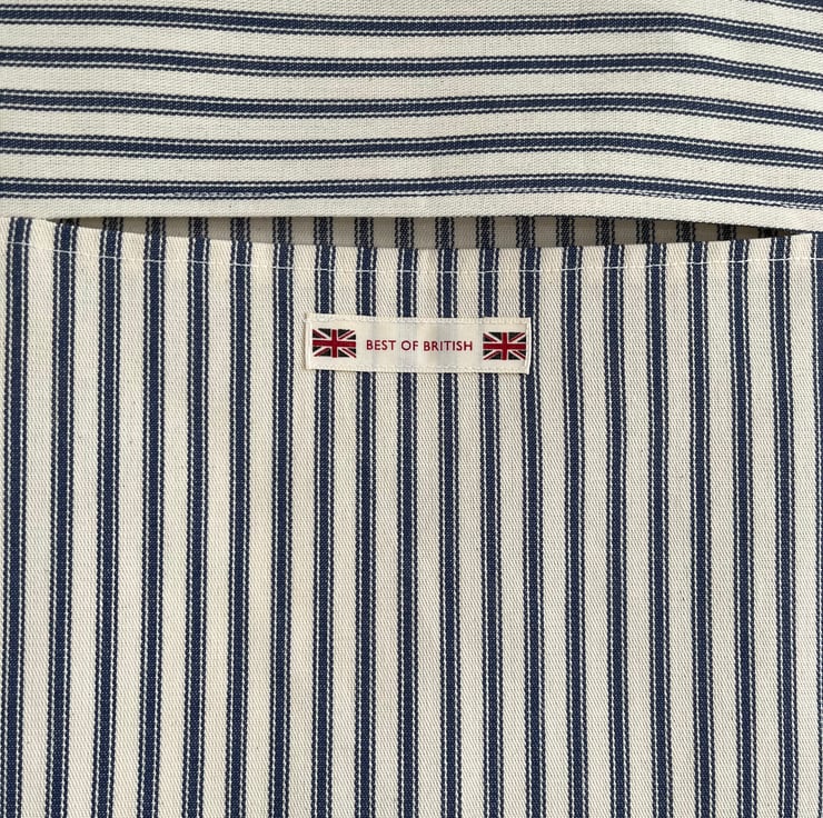 This peg bag in a blue and white ticking is just right for hanging out the first washing of 2021! It has a lovely utilitarian feel to it and a label that says "Best of British" to finish it off.