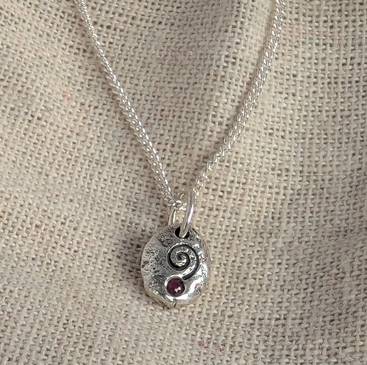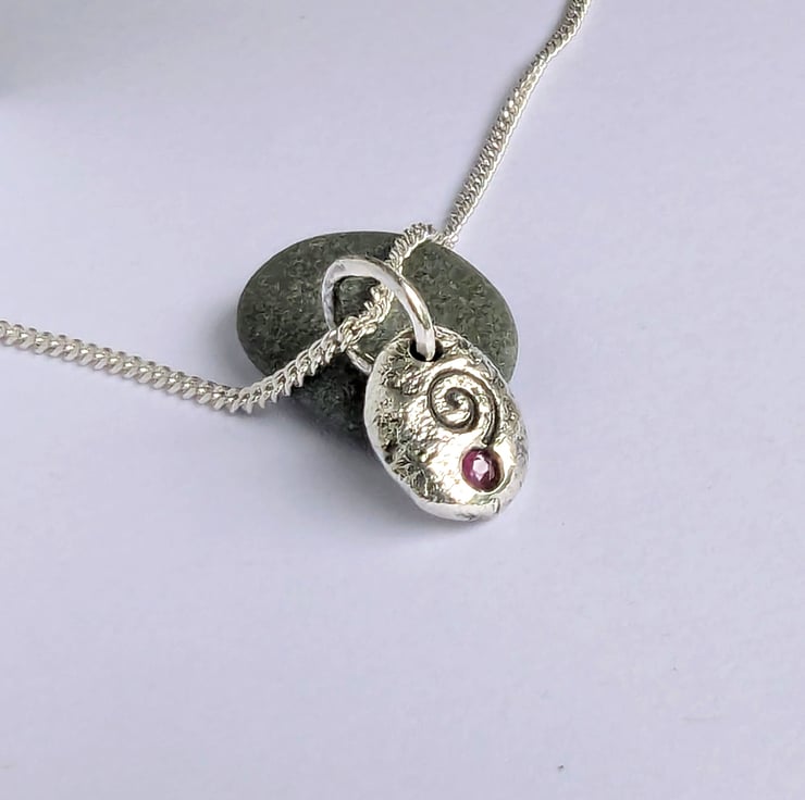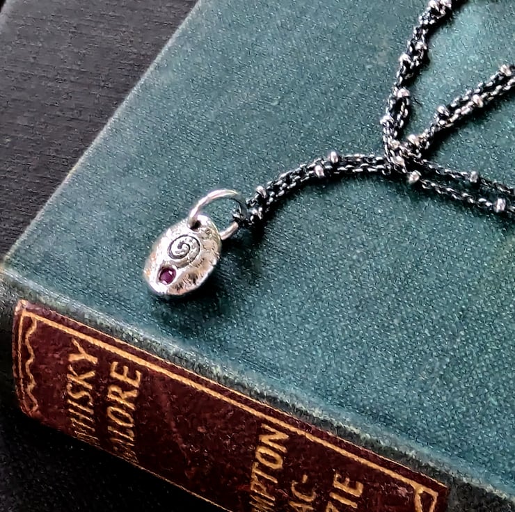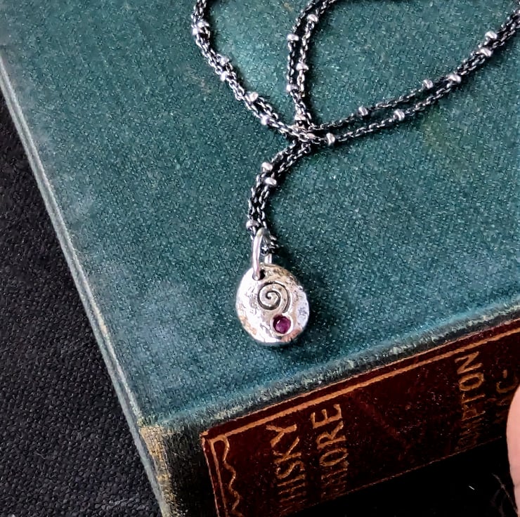 Hand stamped spiral and oxidised highlighting the pendants texture.