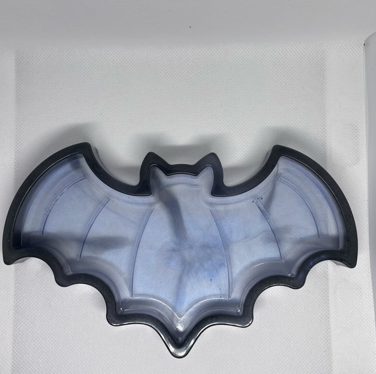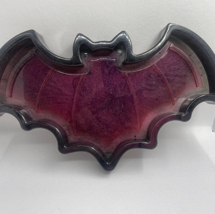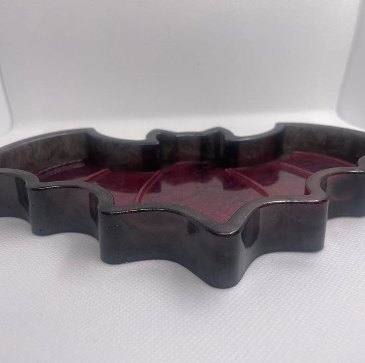 Hand-poured resin tray shaped like a bat—perfect for keys, crystals, or moonlit rituals.