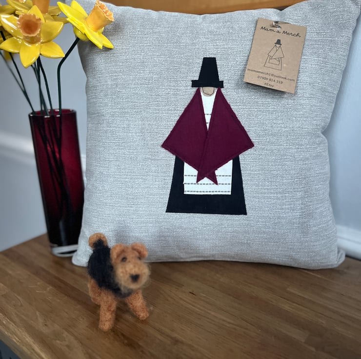 These Welsh lady cushions are made by Mam a Merch (Mam and Daughter) and is perfect as a gift.
