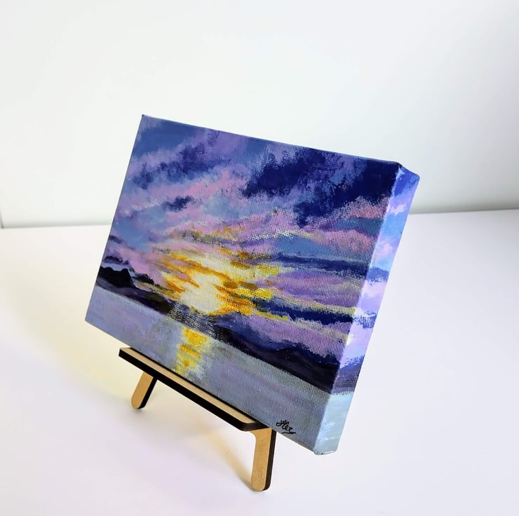The Solway coast provides wonderful sunsets, a few of which I've attempted to commit to canvas. This painting is one of them, and done on a stretched canvas, which sits nicely on the mini-easel supplied with it.