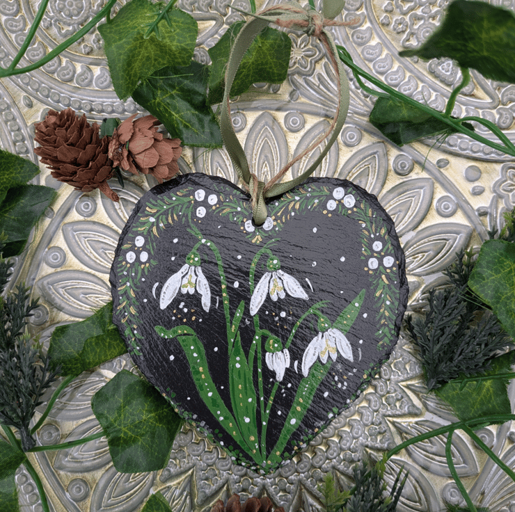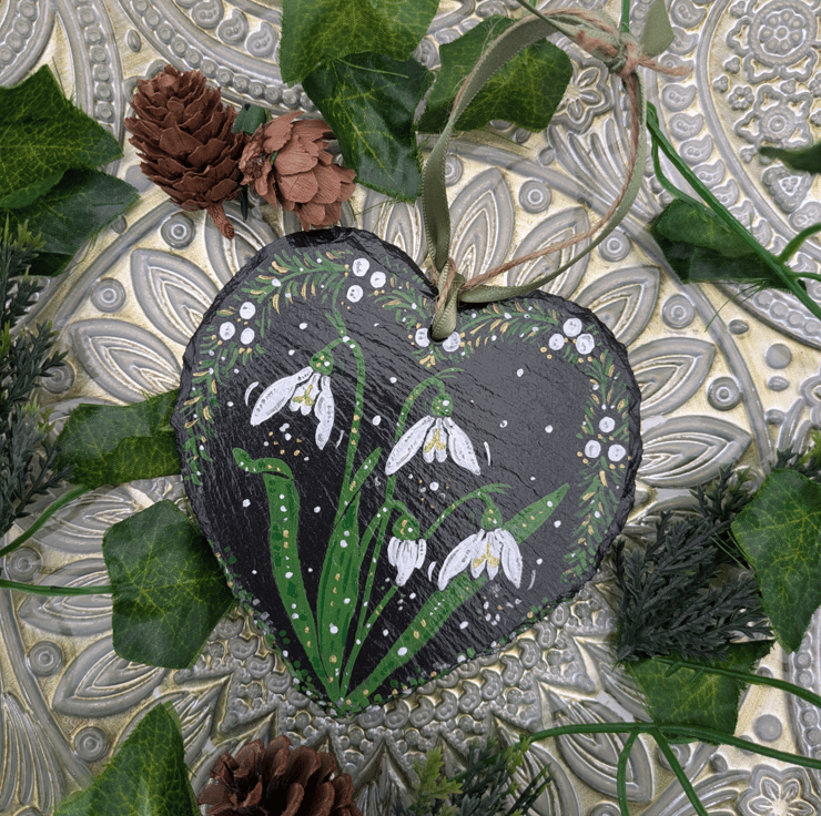 This beautiful hand-painted Snowdrops slate heart would make a lovely unique gift for Christmas or a special birthday.