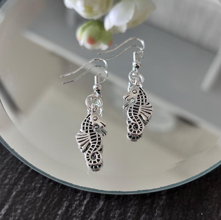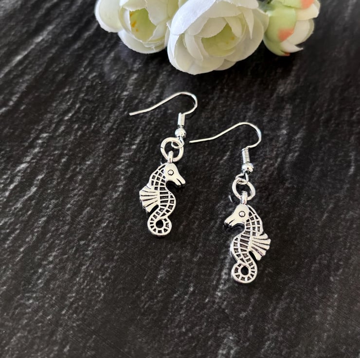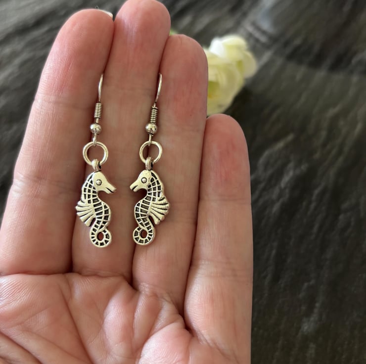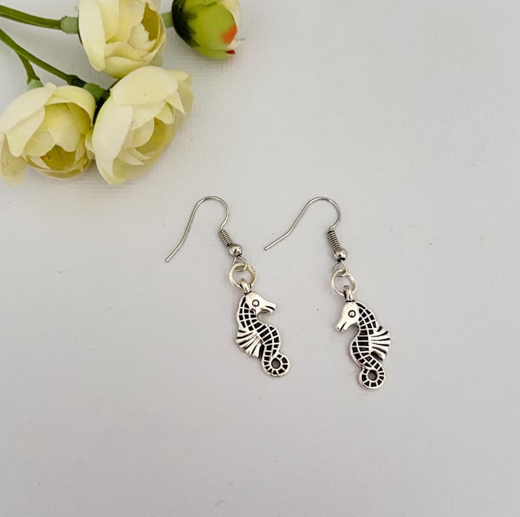 Bring a touch of the beach to your style with these ocean-inspired seahorse earrings. Perfect as summer earrings, they feature Tibetan silver charms paired with hypoallergenic stainless steel ear wires, so you can wear your fun jewellery all day in comfort.