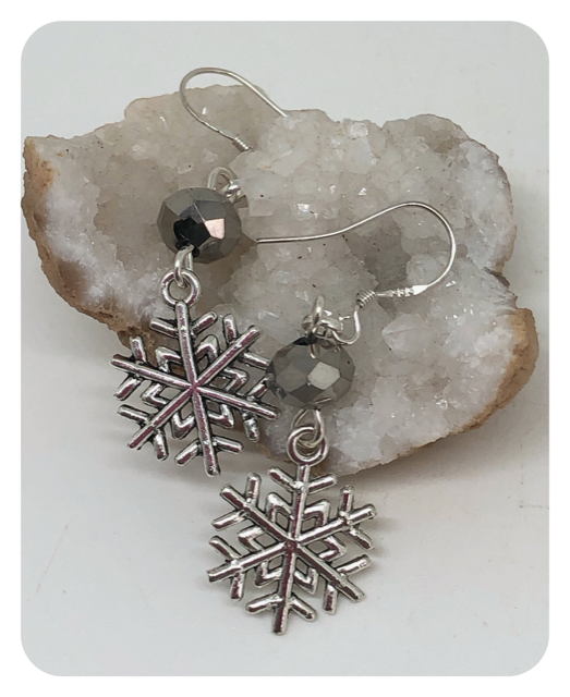 Created using these lovely Tibetan silver snowflake charms, I've added silver metallic glass rondels on to Sterling silver ear wires. Nickel free