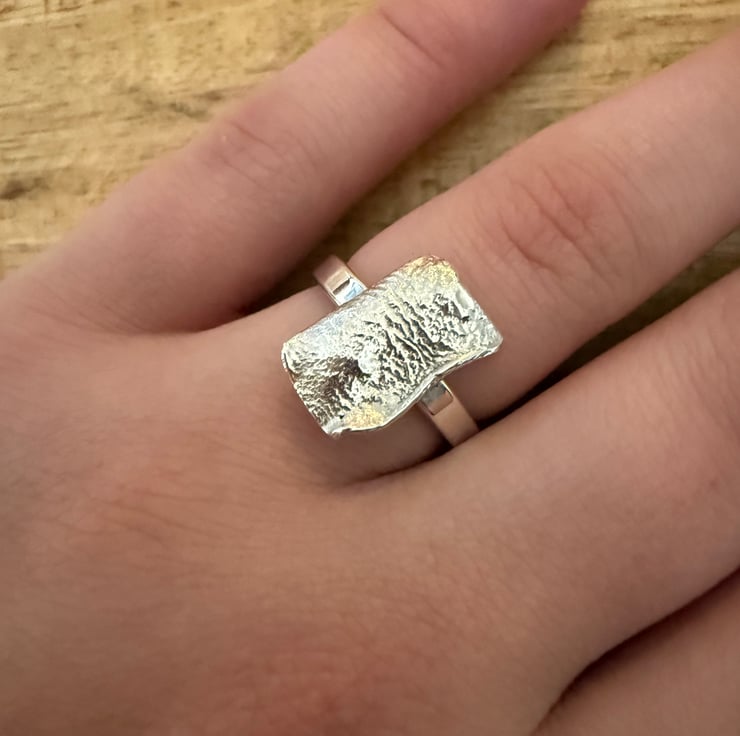 A stunning piece of reticulated silver mounted on a high shine silver band. A true one of a kind piece of jewellery that celebrates the beauty in lines and imperfection.