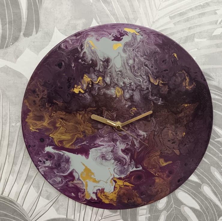 Paint Pour Clock recycled vinyl record
