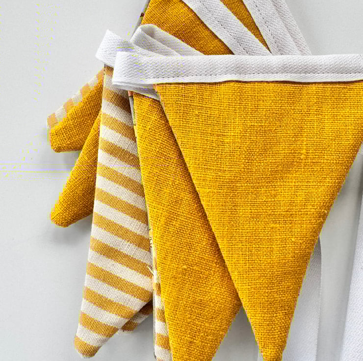 The flags are securely sewn onto white cotton tape all ready to decorate your home. Hang along a mantelpiece or window... perhaps on kitchen shelves or a dresser...