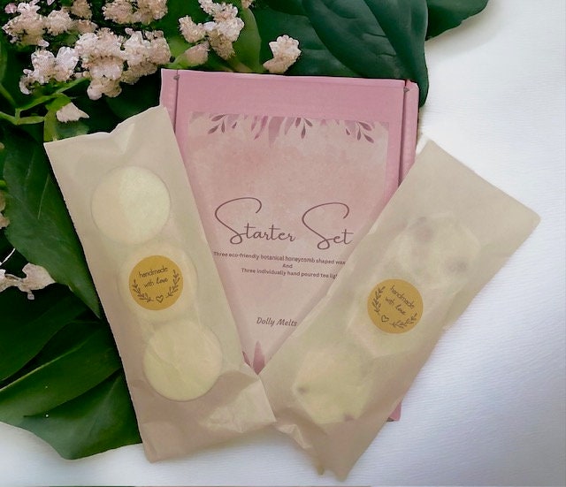 Includes a STARTER PACK which includes 3 Large Honeycomb Botanical Wax Melts and a pack of 3 individually hand poured tea lights.