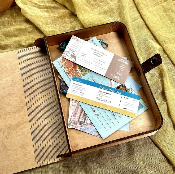 Whether you're marking a family road trip, a wedding day full of wonder, an anniversary steeped in love, or a once-in-a-lifetime journey, this handcrafted wooden box is a beautiful way to keep those memories close. Shaped like a storybook and engraved with a compass to guide your heart, it tucks neatly onto a bookshelf—ready to be opened whenever you want to relive the adventure.