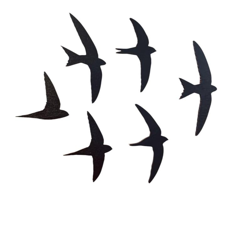 Set of 6 Laser-Cut Swift Birds in Flight – Painted Black – Handmade in Devon
